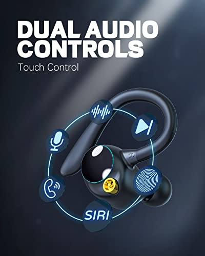 - 【Engineered Design for Sports】:IPX7 waterproof technology can protect your sport earbud from sweat and rain during intense sports or daily use. With the high-tech touch screen, you can answer calls,hang up, play/pause music, adjust volume, switch songs and activate siri with just a touch of your sports headphones. You can easily control it without operating the phone. Enjoy smooth exercise time.