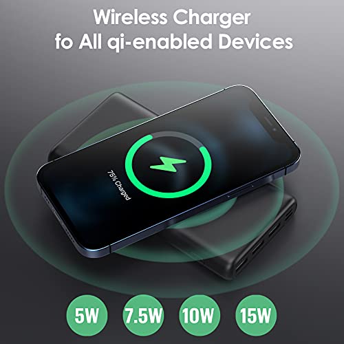 • 2 in 1 WIRELESS PORTABLE CHARGER: The product is featured by wireless charging (5W, 7.5W, 10W and 15W Max ), it can fast charge most Qi-enabled devices as a large capacity rechargeable power supply, and also can be a high-power fast cordless charger pad, eliminate the embarrassment of forgetting the cable.