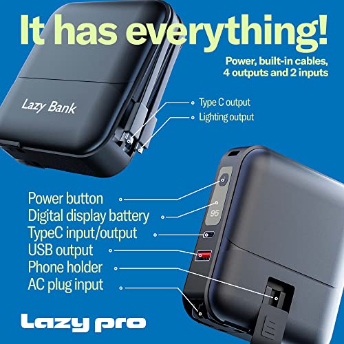 - ⚡BUILT-IN CABLES POWER BANK – No more cluttered and tangled charging adapters and cables in your bag or desk! Lazy Pro portable charger with built-in charging cables gives you the convenience of fast charging your devices on the go, wherever you are, without needing extra cords or adapters. Super powerful and small, it’s the perfect buddy for traveling, flying, or going out. So you can always charge your devices and be prepared for vivid pictures, live streams, or important calls.