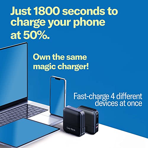 - ⚡ADVANCED FAST-CHARGING TECHNOLOGY – Lazy Pro portable battery charger will power your gadgets in no time! The powerful 18W output delivers high-speed power, charging an iPhone 14 at 50% in under 30 min. Use it as a travel charger, iPhone battery pack, USB power bank, take it on the plane or just wherever you go. It will charge your smartphones, digital cameras, and handheld game consoles while you use it, so you can enjoy your time and not miss anything while on the go.