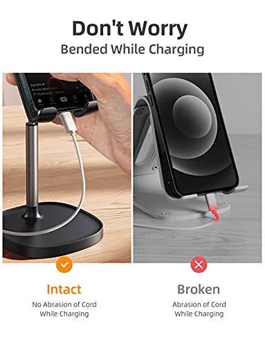 • USER-FRIENDLY DESIGN: [No bent & tangling & tip over worries] when using while charging. Due to bent cable, the low phone dock maybe fall over. LISEN stylish adjustable phone holder for desk has a reserved charging hole design, supports cable management, [No bent & tangling & tip over worries]. This phone pad will not cover the subtitle when you watch the video