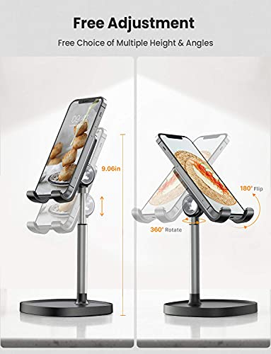 • WEIGHTED ANTI-SLIP BASE: This cell phone stand for desk is equipped with a weighted base and an aluminum alloy rod. Therefore, this iPhone stand holder is stable enough to support all smartphones or small tablets, such as 2021 iPad Mini, iPhone 14 pro max 13 Pro/13 Mini/12/12 Pro/12 Pro Max/12 Mini/iPhone 11/11 Pro/Max/X/MAX/XR/8/8P, Samsung Galaxy S21, S20, Note 10/9/8/Plus, S10/S9/S8, Kindel, Switch, iPad Mini,iPad Air, etc.We recommend the most stable compatible device size is 4-10 inchs