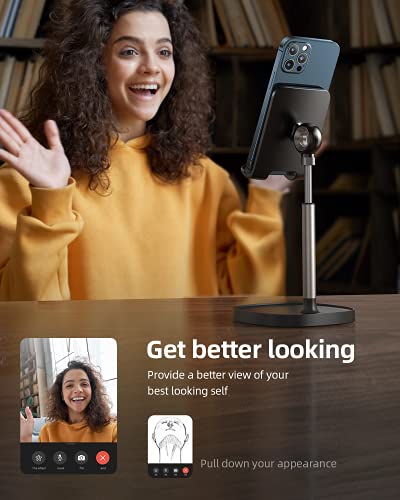 • TALLER AND MORE PHOTOGENIC STAND, HELP TO CORRECT THE “TEXT NECK”: This cell phone stand holder is in accordance with ergonomic design. Providing you comfortable viewing angle which helps to fix your posture and reduce neck & back strain. The height can be easily adjusted between 7.1in-8.5in(1.4in adjustable range), the angle is adjustable between 5°~85°