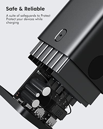 - 【4 Output and 3 Input】:This portable battery pack has 4 outputs for different devices. Two 5V/2.4A USB ports and one Type C port and one USB fast charging output port allow you to charge several devices like iPad pro, Nintendo Switch, phone simultaneously. With Micro USB, l i g h t n i n g and type-C input, more charging options are available.