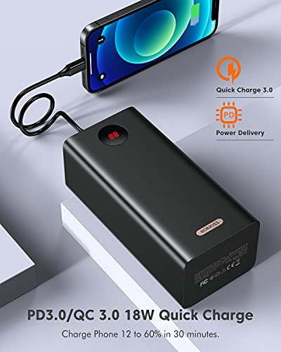 - 【Ultra-High Capacity】:The massive 60000mAh power bank provides more than 12 full charges for iPhone 11, almost 21 full charges for iPhone and android, more than 12 charges for Huawei P10 (Supports Huawei scp 22.5w fast charging).