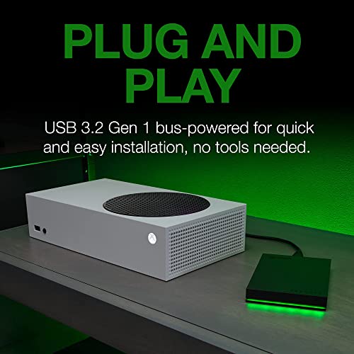 Seagate Game Drive for Xbox 2TB External Hard Drive Portable HDD – USB 3.2 Gen 1, Black with built-in green LED bar , Xbox Certified, 3 year Rescue Services (STKX2000400)