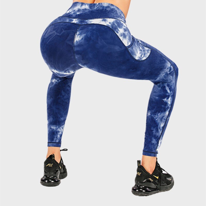 Tie-dye Workout Yoga Pants High Waist Elastic Tights Sports Hip Lift Pocket Seamless Fitness Leggings